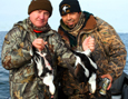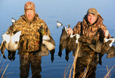 Sea duck and diver layout rigs consist of Bankes Marine layout boats and dozens of high quality decoys. Bankes layouts are considered the best in the industry. For Goose hunts, we'll deploy Big Foot and Outlaw decoys.
